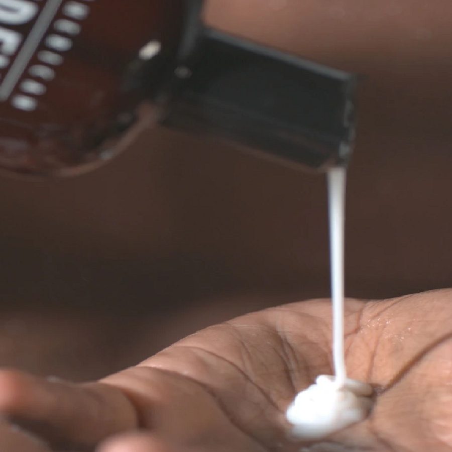 Haare gründlich nass machen. Eine kleine Menge in Haar und Kopfhaut einmassieren. Gut ausspülen.