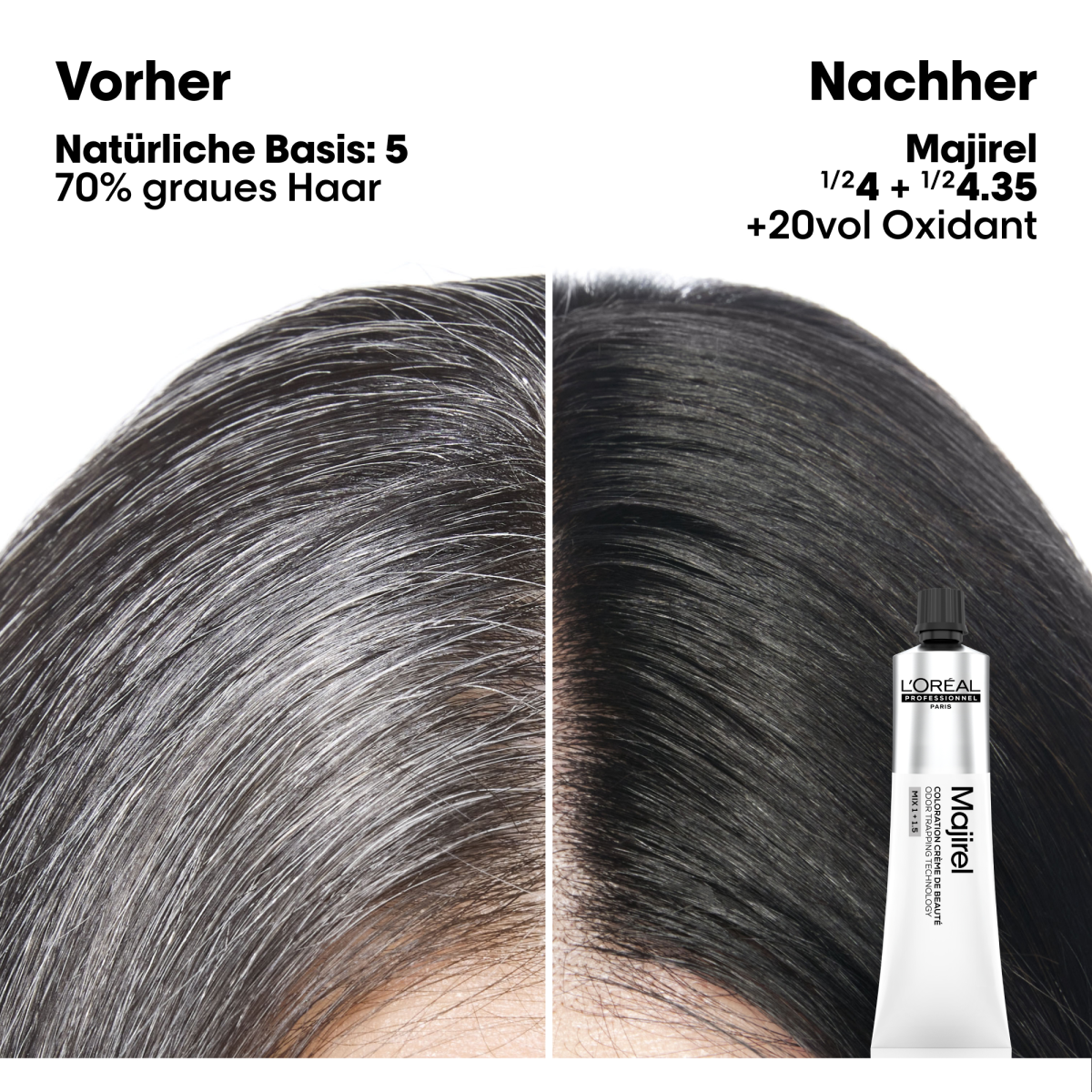 Permanente Haarcoloration Diese ikonische Colorationscreme in einer neuen verantwortungsvollen und friseurfreundlichen Verpackung. Lassen Sie Ihrer Kreativität freien Lauf mit der breiten Farbpalette von Majirel. Sie bietet Ihnen bis zu 100% Grauabdeckung sowie 45% gepflegteres Haar nach der Coloration dank Ionène G™. Langanhaltend satte, tiefe, intensive Coloration die bis zu 3 Tonhöhen Aufhellung schafft.