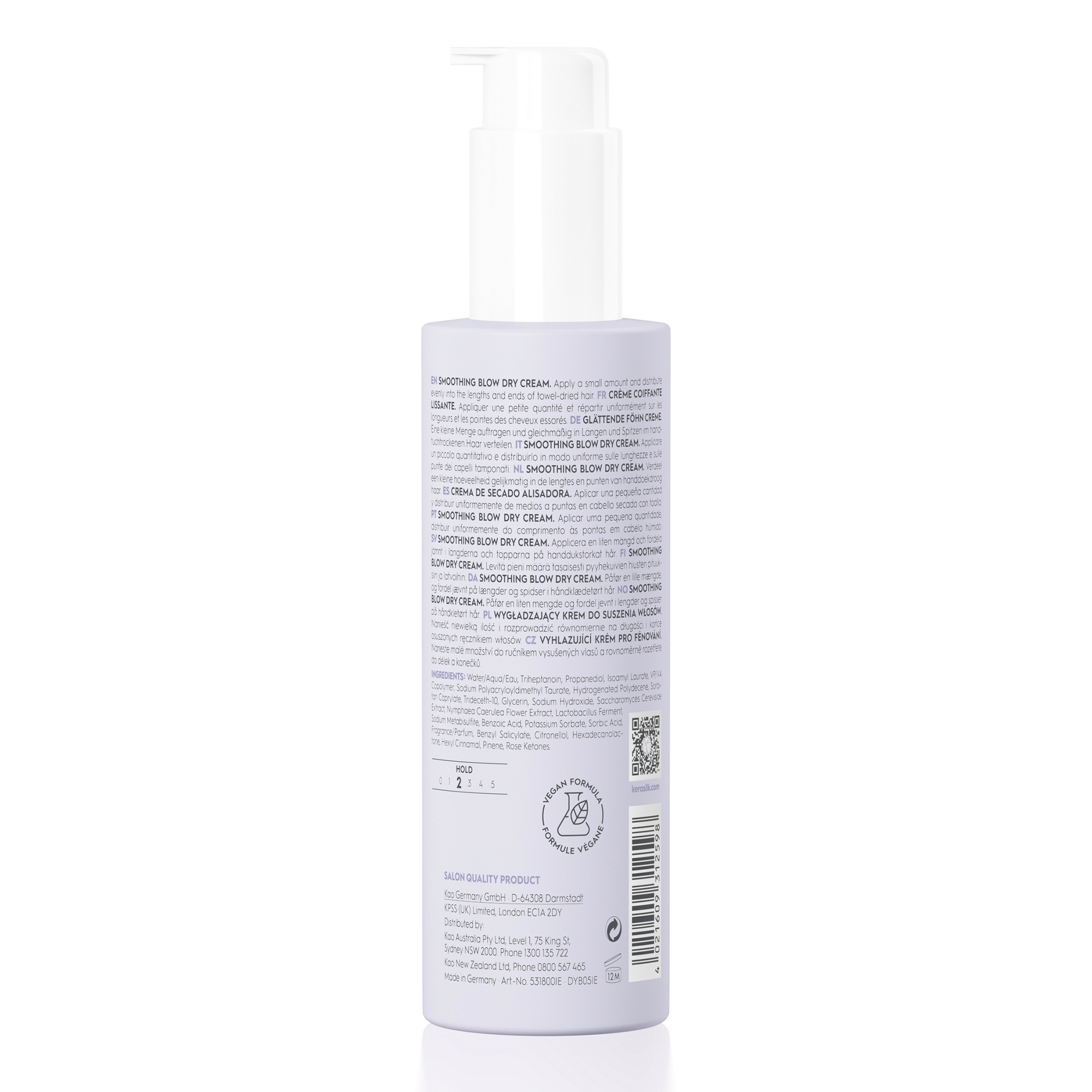 Diese Hitzeaktivierte, leistungsstarke Formulierung glättet die Haaroberfläche und sorgt für einen lang anhaltenden Föhnergebnis mit flexiblen, natürlichen Bewegungen und strahlendem Glanz. Mit Hitzeschutz bis zu 230 °C und lang anhaltenden Schutz vor Feuchtigkeit. Angereichert mit Biomimetic Silk und Shea Öl.