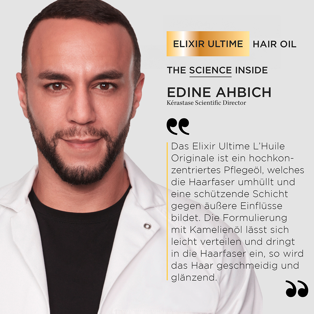 L‘Huile Originale Elixir Ultime kann als Ölbad vor dem Shampoo und dank seines 230°C-Hitzeschutzes auch vor dem Föhnen verwendet werden, ebenso wie für den letzten Schliff beim Styling oder für Nachbesserungen im Laufe des Tages, damit das Haar glatter und glänzender wird und sich leichter frisieren lässt. Das Haaröl kann ergänzend zu allen Kérastase-Haarpflegeroutinen verwendet werden.