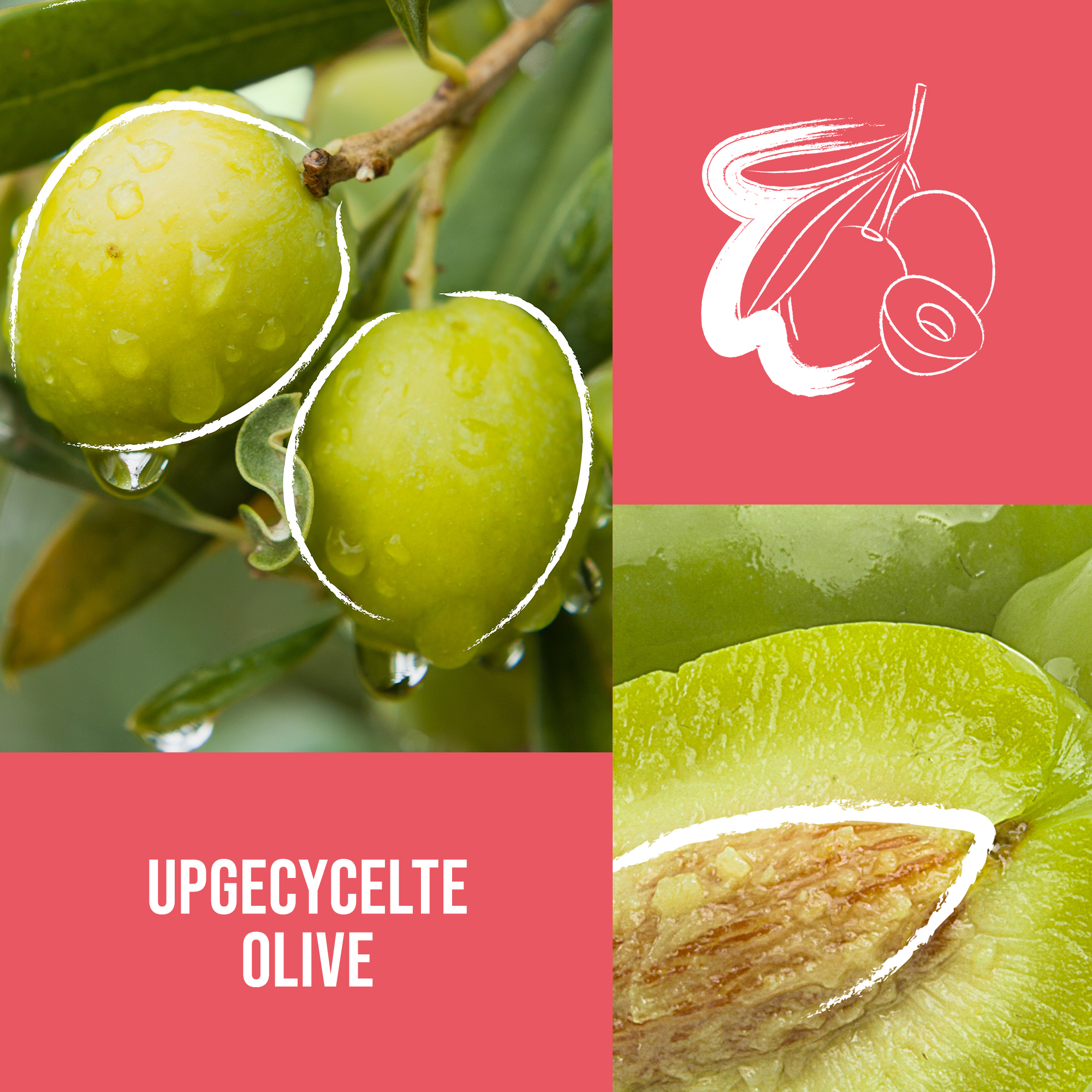 Upgecycelte Olive – ist bekannt für ihren hohen Gehalt an Antioxidantien, wie Vitamin E und hilft das Haar vor Umwelteinflüssen und oxidativem Stress zu schützen, die zu Trockenheit und Brüchigkeit führen können.