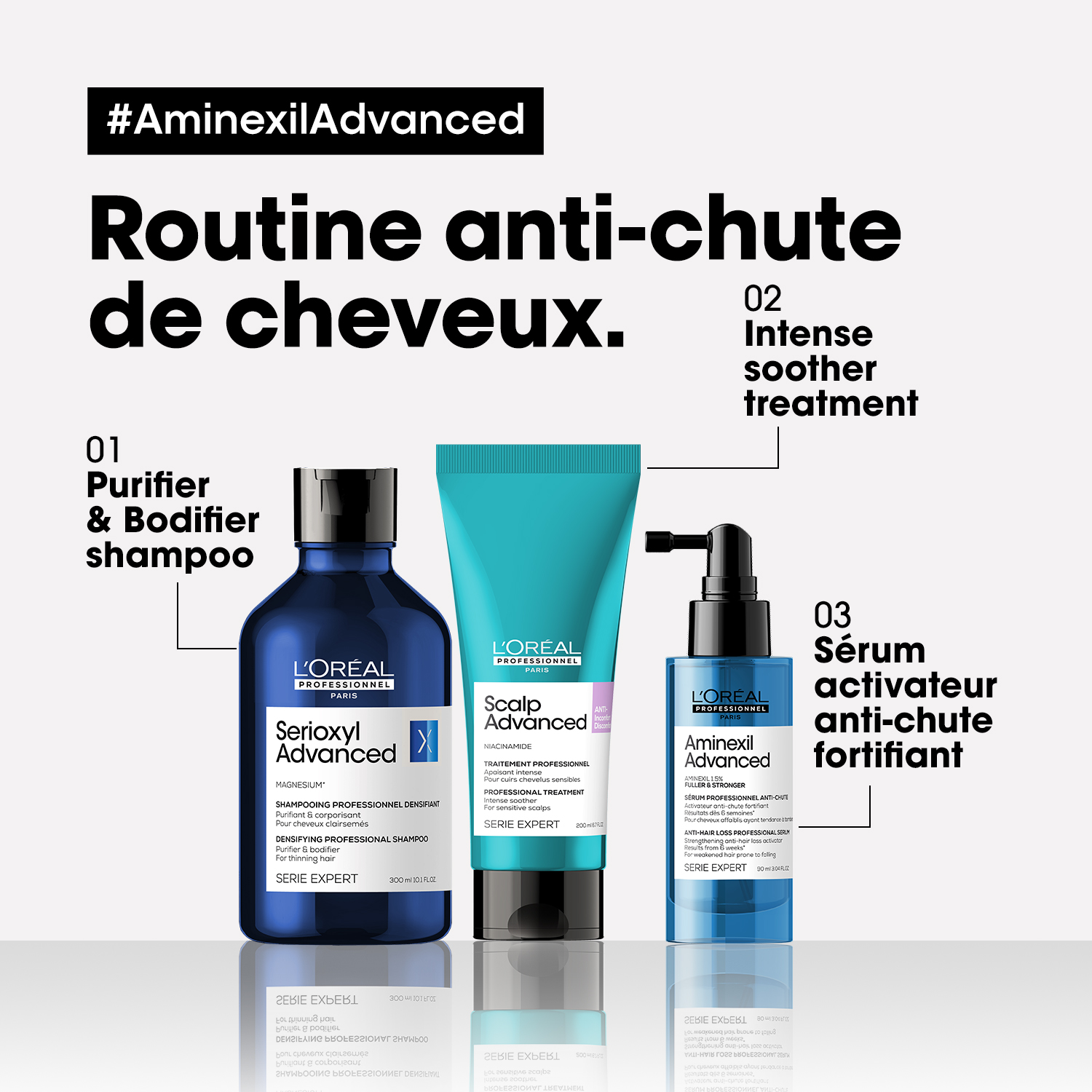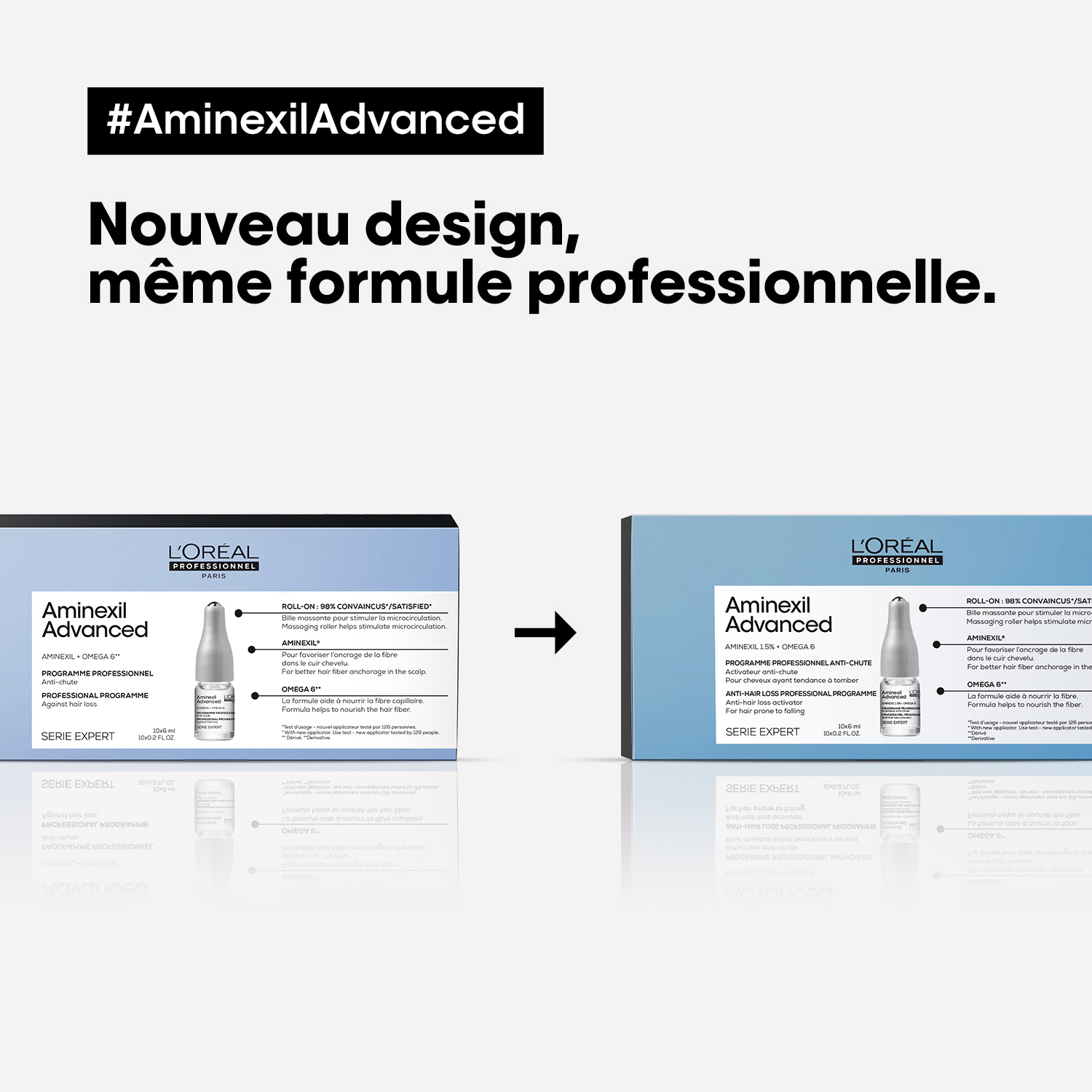 Die Aminexil Advanced Anti-Haarausfall Kur von L'Oréal Professionnel Paris ist eine professionelle 6-Wochen-Kur gegen dünner werdendes Haar, die essentielle Nährstoffe liefert, um das Haar zu verdichten und zu stärken. Angereichert mit Aminexil und einem Omega-6-Komplex regt die Kur die Wurzelaktivität an und hilft, neues, gesundes und kräftiges Haar wachsen zu lassen.