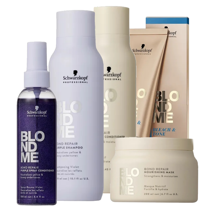 Die BLONDME Bond Repair Purple Mask mit der BOND REPAIR TECHNOLOGIE neutralisiert gelbe Untertöne und hilft, Messingtöne zu verhindern, und pflegt das Haar intensiv. Die mit Mandelöl und Kornblume angereicherte Formel bietet eine präzise Abstufung kühler Pigmente, um eine frische kühle Farbrichtung für ein klares Blond zu erhalten, ohne die Haarfarbe zu verändern. Es stärkt das Haar, indem es die inneren Haarverbindungen aufbaut, und repariert Haarschäden, die zwei Aufhellungsservices entsprechen- bereits nach nur einer Anwendung.BLONDME Care ist für Kund:innen mit blondem oder aufgehelltem Haar, die ein professionelles Haarpflegeprodukt benötigen, das ihr Haar schützt und stärkt.Die BLONDME Bond Repair Purple Mask erfüllt die Bedürfnisse derjenigen, die ihren blonden Look auffrischen und gelbe Untertöne entfernen möchten, während sie gleichzeitig ihr Haar pflegen.Neutralisiert gelbe Untertöne Frischt stumpfes Haar auf und hilft, Messingtöne zu verhindern Entwirrt das Haar sofort von den Längen bis zu den Spitzen Das Haar ist nach nur einer Anwendung 7-mal stärker* Stärkt die innere Haarstruktur und reduziert Haarbruch um bis zu 80% *vs unbehandeltem Haar.Anwendung:Trage die Lila Maske mit Anti-Gelbstich-Effekt auf das handtuchtrockene Haar auf. 5-10 Minuten einwirken lassen. Gründlich ausspülen.Schwarzkopf BlondMe Bond Repair Purple Mask 200mlEAN: 4067971081946​