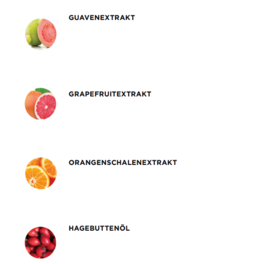 Reich an Vitamin C wirkt das Grapfruitextrakt adstringierend und entgiftend. Die enthaltenen Antioxidatien