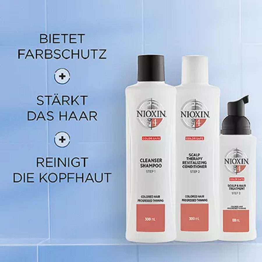 Das Nioxin 3d Pflegesystem-Kit 4 für coloriertes, sichtbar dünner werdendes Haar stärkt die Haarstruktur und schützt das Haar gegen Haarbruch. Das professionelle 3-stufige System ist von der Premium-Hautpflege inspiriert und wurde als spezielle Pflegebehandlung für kräftiger und voller aussehendes Haar entwickelt. Das Nioxin Pflegesystem-kit 4 reduziert Haarverlust durch Haarbruch, stärkt das Haar und verleiht coloriertem Haar einen gesund aussehenden Glanz, während es die Kopfhaut erfrischt.