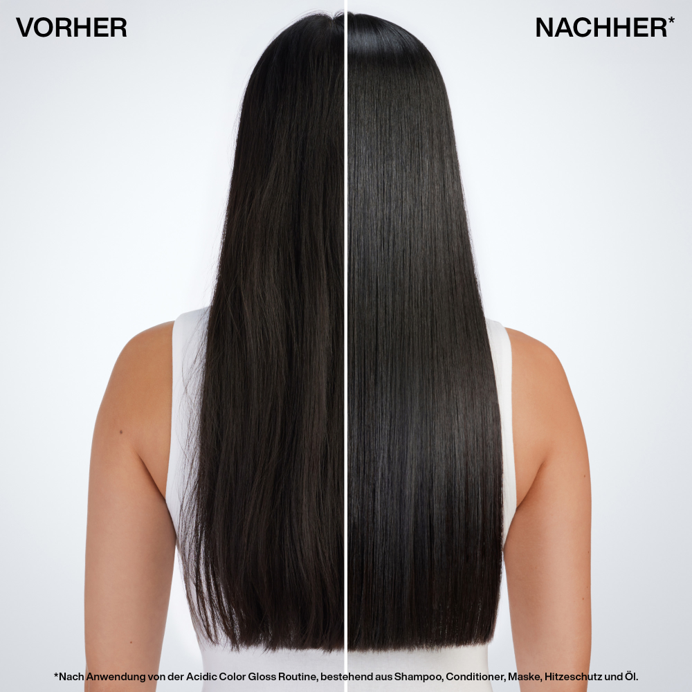 Redken's Gloss-In-Mask kombiniert den Glanz-Effekt eines professionellen Glossings mit der Feuchtigkeitspflege einer Maske. Die silikonfreie Formel basiert auf einer innovativen Cream-To-Gloss Technologie, die für intensiven Glanz sorgt und dem Haar langanhaltend Feuchtigkeit spendet. Der ultra saure pH-Wert der Maske entfernt Rückstände auf der Haaroberfläche und richtet die Haarfasern so aus, dass sie mehr Licht reflektieren - für sichtbar glänzenderes Haar. Das enthaltene Glycerin in Kombination mit Fettverbindungen versorgen das Haar mit 4x mehr Feuchtigkeit, ohne dabei zu beschweren. Für maximal glänzendes, mit Feuchtigkeit versorgtes und gesund aussehendes Haar.