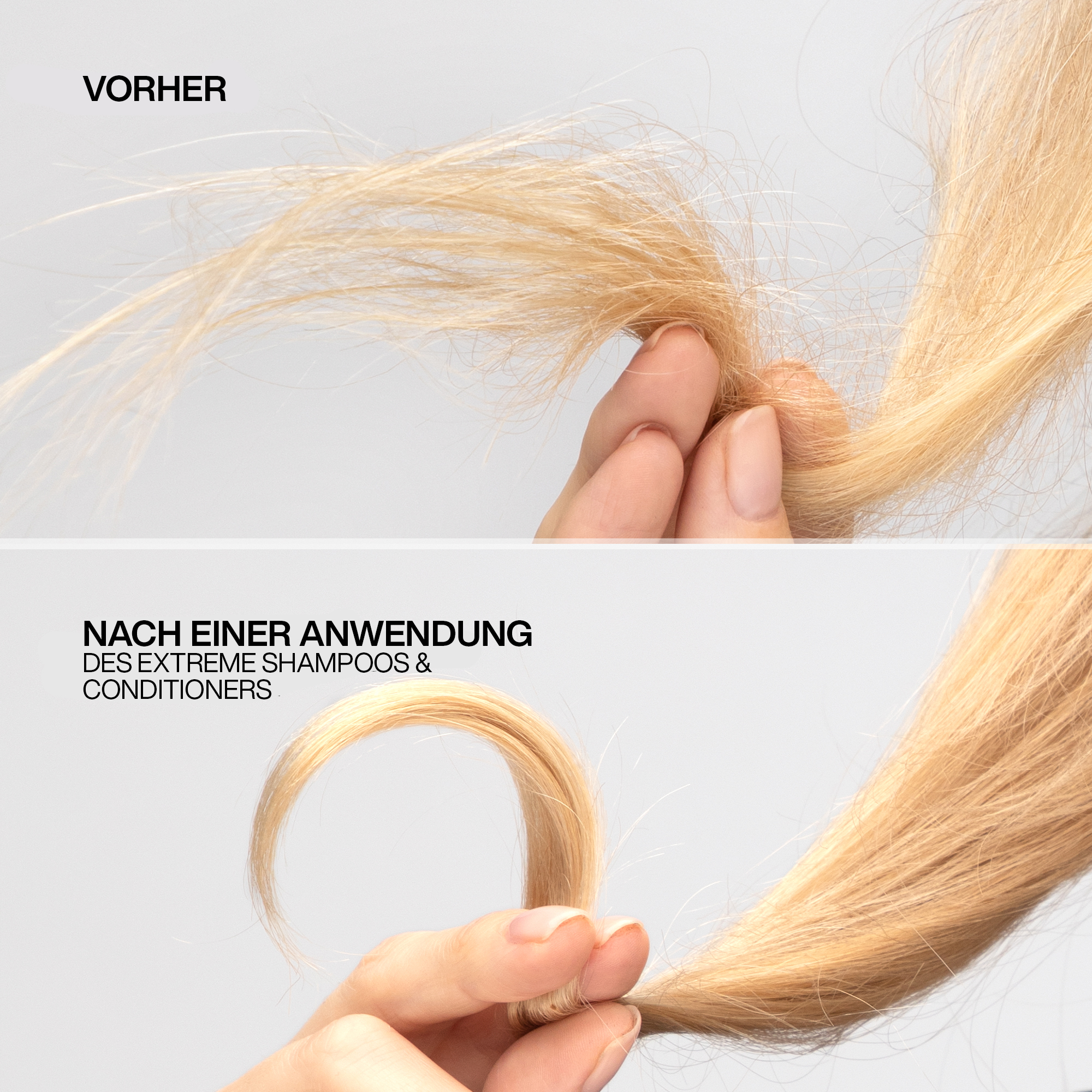Strapaziertes und kraftloses Haar braucht eine nährende Pflege, die perfekt auf die Bedürfnisse der Haarstruktur abgestimmt ist. Mit diesem Shampoo wird Ihr gestresstes Haar wieder belebt und regeneriert. Es reinigt sanft und repariert sprödes und geschädigtes Haar. Nach der Haarwäsche sind die Haare glänzend, weich und leicht, sie sehen kraftvoll und gesund aus. Enthalten ist ein spezieller RCT-Protein-Komplex. Dieser wirkt schützend und pflegend auf die Haarstruktur, von den Spitzen bis zum Ansatz sieht Ihr Haar nach dem Waschen kräftig, gepflegt und gesund aus. Es reicht schon eine kleine Menge, um auch lange Haare optimal einzuschäumen. Der Mix aus Sojaproteinen, Ceramiden, Sepicap und Arginin nährt das Haar und gibt ihm mehr Kraft und Stärke. Die geschädigte Haaroberfläche wird dank des Wirkstoffkomplexes geglättet und das Haar erhält einen strahlenden Glanz. Sojaproteine sorgen zudem dafür, dass der Ansatz mehr Struktur bekommt und das Haar somit fülliger wirkt. Ein weiterer Vorteil: Der Schutz des Haares hält an und Spliss sowie weiteren Schädigungen wird effektiv vorgebeugt. Dafür sorgt vor allem Sepicap, das den Spitzen Stärke und Kraft verleiht und sie gegen äußere Einflüsse schützt. Bei regelmäßiger Nutzung des Extreme Shampoos wird das Haar dauerhaft geschmeidiger und sieht gesund und glänzend aus. Es lässt sich nach dem Waschen wunderbar leicht kämmen und fällt seidenweich. Redkens Extreme Shampoo ist eine professionelle Pflege für strapaziertes Haar, die schnell zu optimalen Ergebnissen führt.