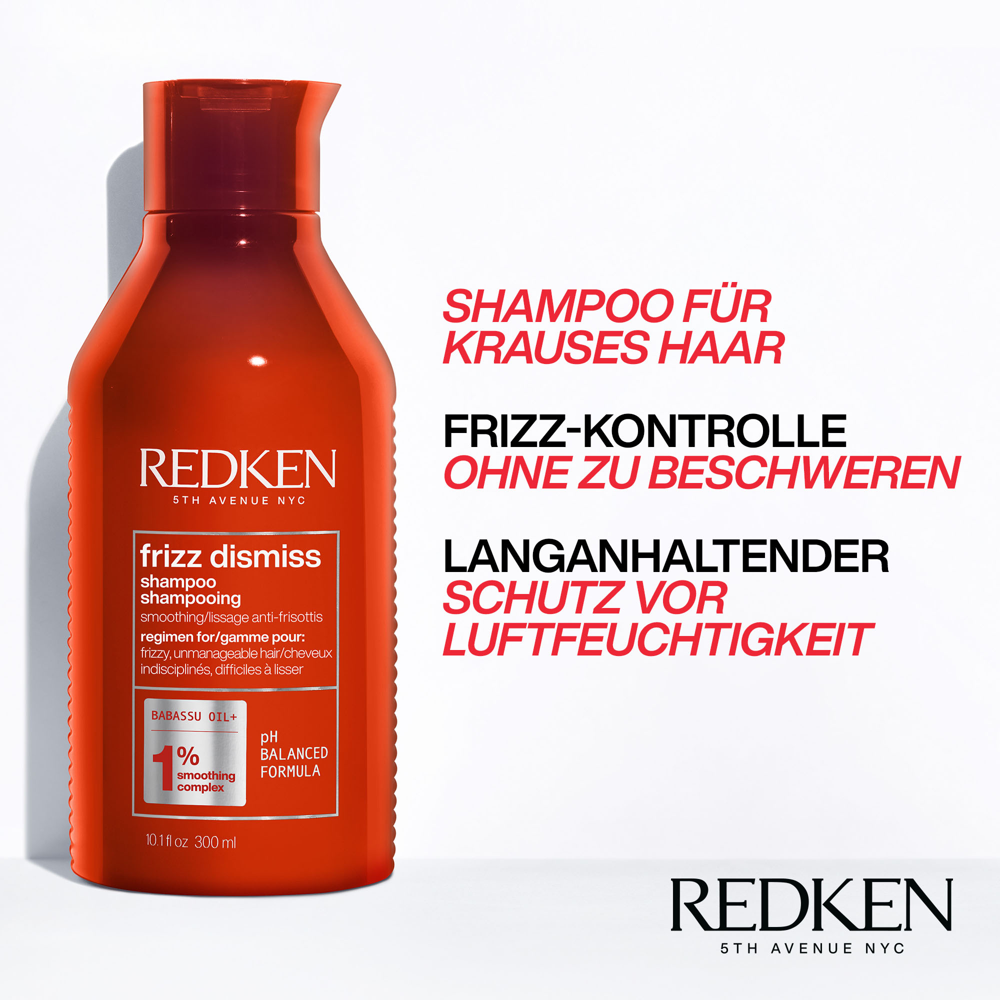 Dieses Shampoo ist ein mildes, Natriumchlorid-freies und Sulfat-freies Pflegeshampoo für alle Haartypen, die zu Frizz oder statischer Aufladung neigen. Die reichhaltige Pflegeformel mit feuchtigkeitsspendendem Babassu-Öl hydriert das Haar bis in die Spitzen. Gemeinsam mit dem Smoothing Komplex sorgt es für Oberflächenglättung und seidigen Glanz. Das Haar wird sanft gereinigt und die Haaroberfläche wird geschlossen und geglättet. So wirkt das Haar auch ohne Glätteisen bereits nach dem Waschen wesentlich glatter. Zusätzlich macht das Anti-Frizz-Shampoo das Haar weicher und geschmeidiger, sodass es spürbar entwirrt und besser kämmbar wird. Gleichzeitig verleiht das pflegende Shampoo Schutz gegen Frizz und statische Aufladung, ohne zu beschweren. Dadurch bleiben die Haare auch unter extremen Bedingungen wie beispielsweise hoher Luftfeuchtigkeit oder sehr trockener Luft seidig und glatt. In Kombination mit den anderen Pflegeprodukten aus der Redken Frizz Dismiss Serie wird die pflegende Wirkung noch verstärkt. So erhält selbst krauses, krisseliges, feines, sprödes oder beschädigtes Haar seidigen Glanz und die Frisur sieht jeden Tag mühelos so aus, als wäre sie von einem professionellen Haarstylisten gemacht worden. Für ein glattes, seidiges und weiches Haargefühl bei jedem Wetter.