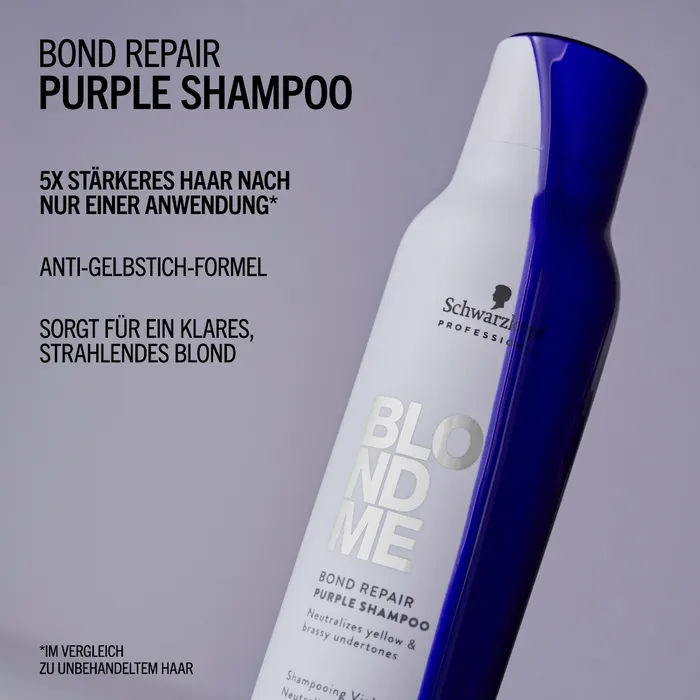 BLONDME Care ist für Kund:innen mit blondem oder aufgehelltem Haar, die ein professionelles Haarpflegeprodukt benötigen, das ihr Haar schützt und stärkt. Das BLONDME Bond Repair Purple Shampoo erfüllt die Bedürfnisse derjenigen, die ihren blonden Look auffrischen und gelbe Untertöne entfernen möchten, während sie ihr Haar reinigen.