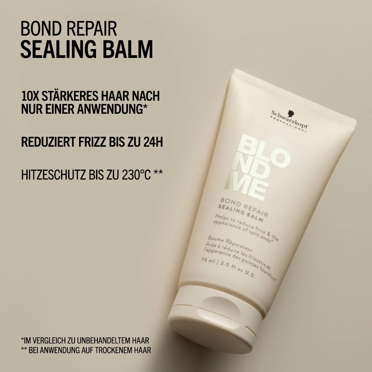 Der BLONDME Bond Repair Sealing Balm mit der BOND REPAIR TECHNOLOGIE versiegelt Spliss und hilft, Frizz zu reduzieren und das Haar zu glätten, sodass es geschmeidig und glänzend aussieht. Bietet einen Hitzeschutz von bis zu 230°C und stärkt das Haar, indem es die inneren Haarverbindungen aufbaut und Haarschäden repariert, die zwei Aufhellungsservices entsprechen - bereits nach nur einer Anwendung.