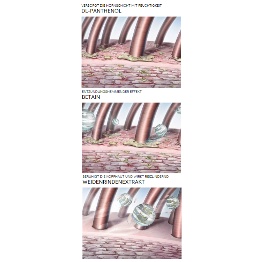 Ideal für empfindliche Kopfhaut geeignet, lindert die Lotion Spannungsgefühle, Hautrötungen und Juckreiz. Gleichzeitig spendet sie wohltuende Feuchtigkeit und baut die hauteigene Schutzbarriere wieder auf. pH neutral, alkohol- und parfumfrei.
