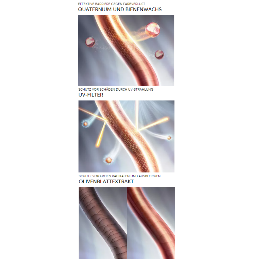 Die konzentrierte Farbschutzbehandlung für coloriertes Haar schützt die Haarfarbe langanhaltend und verstärkt die Farbbrillianz. Die enthaltene 3D Protect Technology verschließt die Farbpigment im Haar. Vor Farbverschiebungen oder dem Verblassen wird es zuverlässig geschützt. Für zusätzliche Pflege mit der Color Save Mask kombinieren.