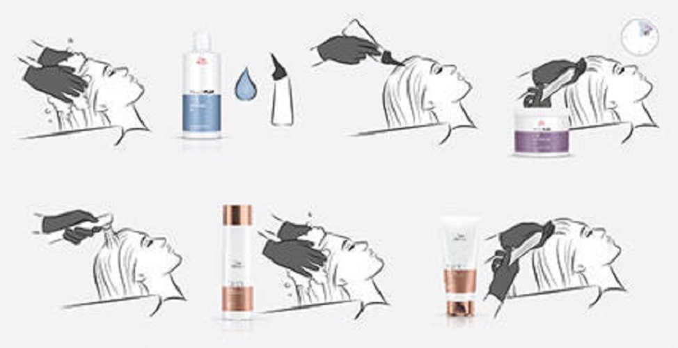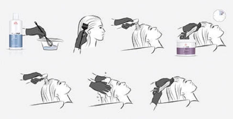 Mischen Sie WELLAPLEX N°1 Bond Maker mit den Produkten der BLONDOR Familie (Blondor, Freelights & Magma) oder Farbprodukt (der Oxidationsmittelanteil kann variieren).