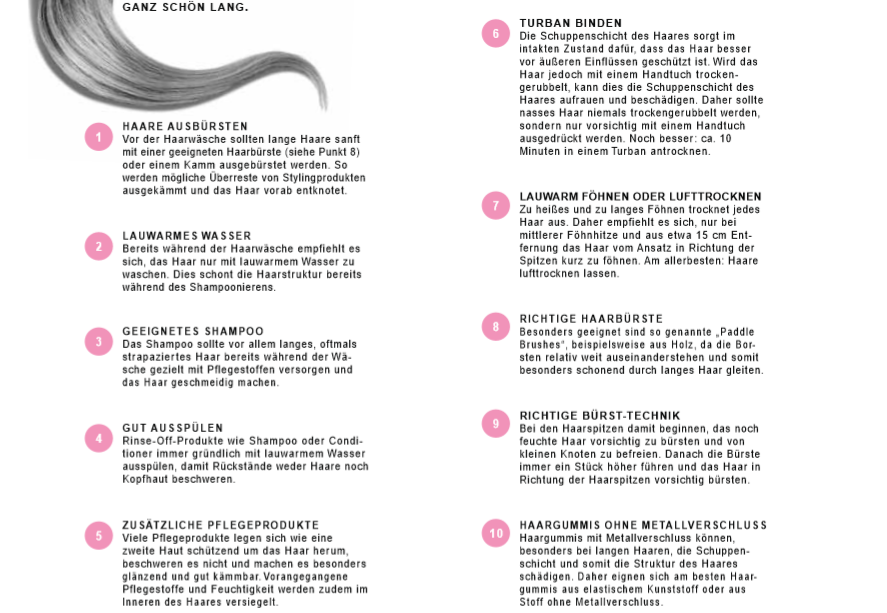 Nach der Haarwäsche gleichmäßig in Haarlängen und -spitzen einarbeiten und 1-2 Minuten einwirken lassen. Gründlich ausspülen. Dosierung: je nach Haar länge 10-15 ml.