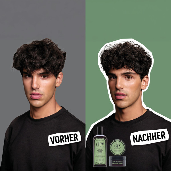 American Crew präsentiert Pre-Styling Shampoos - unsere ersten Shampoos, die Ihr Haarstyling von 80 % auf 100 % bringen. Sie reinigen das Haar und bereiten es auf das Styling vor, damit Ihr Hairstyle sein volles Potenzial entfalten kann. Der Pre-Styling Forming Cleanser ist ein innovatives Shampoo für die Haarpflege von Männern, das Locken direkt nach dem Duschen verbessert und definiert. Beginnen Sie Ihre Haarpflegeroutine mit unserem Forming Shampoo und seiner wirksamen Formel, die das Haar sanft reinigt und Ihren Locken Definition und Trennung verleiht. Es bietet mehrere Vorteile, die für alle Lockentypen geeignet sind. Es hilft, das Mikrobiom Ihrer Kopfhaut auszugleichen und schafft so die ideale Umgebung für gesundes Haarwachstum. Das Shampoo verwendet fortschrittliche biomimetische vegane Lipide aus Jojobaöl, um eine Schutzschicht auf jeder Haarfaser zu bilden. Die innovative Technologie hilft, Feuchtigkeit zu speichern und schützt vor Luftfeuchtigkeit. Dadurch pflegt dieses Shampoo die Locken, macht sie geschmeidig und definiert sie, während es ihre Form und Vitalität verbessert. Die leichte Formel glättet die Haarkutikula und sorgt für einen effektiven Frizz-Schutz, während die natürliche Sprungkraft und das Volumen Ihres Haares erhalten bleiben. Das Haarpflegeprodukt sorgt vor dem Styling dafür, dass Ihre Locken den ganzen Tag über gesund und kontrollierbar bleiben. Das Shampoo ist unverzichtbar für texturiertes oder zu Frizz neigendem Haar jeder Länge. Der Pre-Styling Forming Cleanser schäumt schnell auf und hat einen belebenden Duft nach Zitrusfrüchten, Lilie und kräftigem Moschus. Einfach auf das nasse Haar auftragen, in das Haar und die Kopfhaut einmassieren, danach ausspülen und bei Bedarf wiederholen. Kombinieren Sie den Pre-Styling Forming Cleanser mit dem Forming Cream Puck für mittleren, flexiblen Halt und noch mehr Lockendefinition. Nicht nur reinigen, sondern vorstylen!