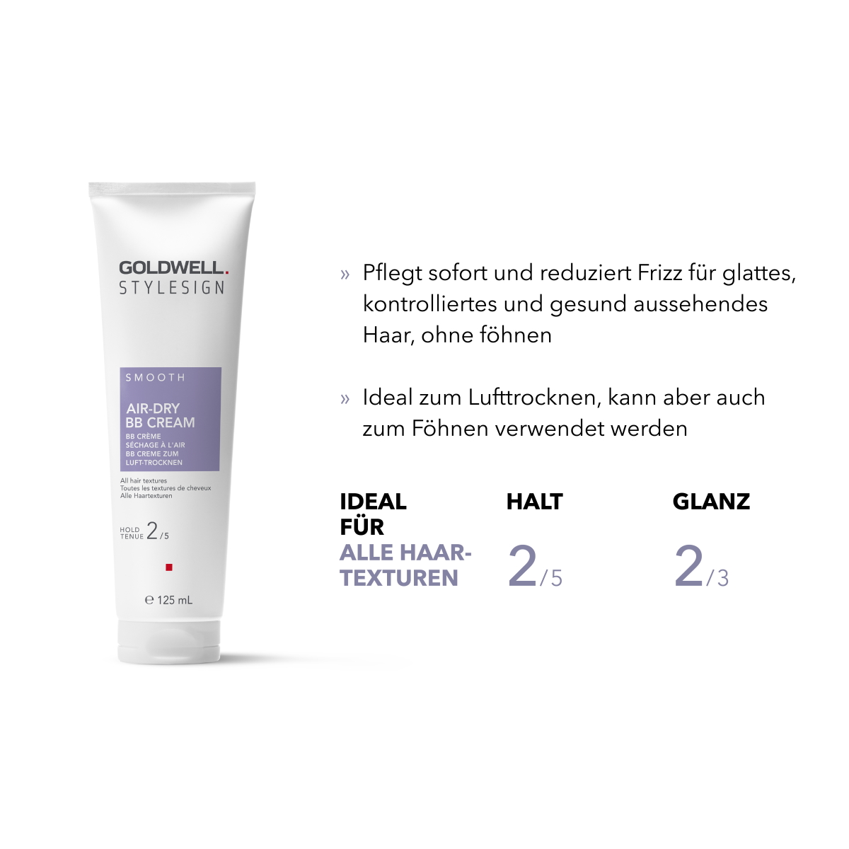 Goldwell Style Sign Smooth Air-Dry BB Cream ist eine pflegende Creme. Pflegt sofort und reduziert Frizz für glattes, kontrolliertes und gesund aussehendes Haar, ohne zu föhnen