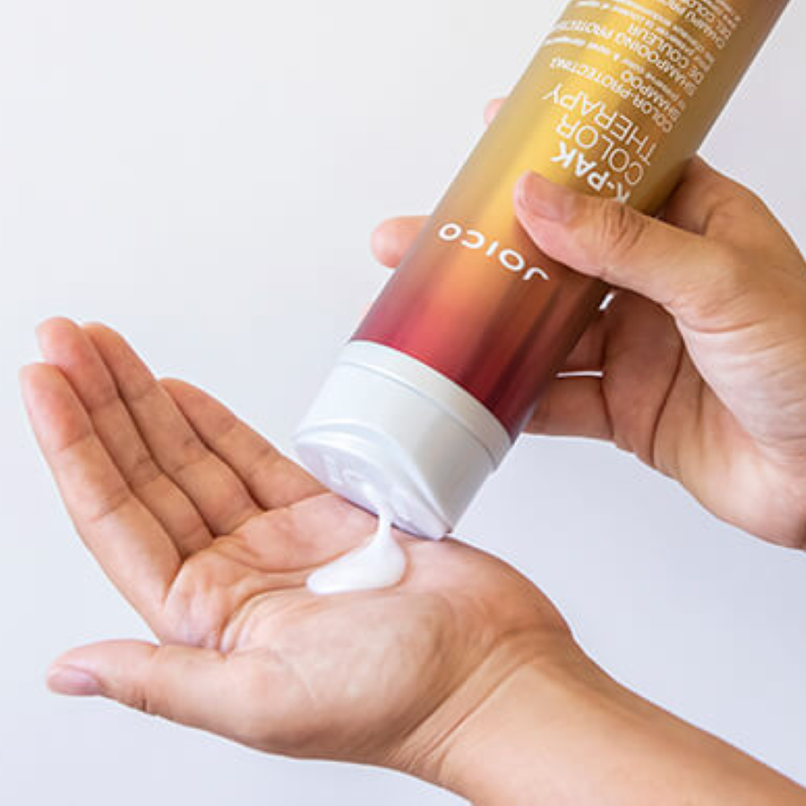 Waschen, ausspülen und nach Wunsch noch einmal waschen. Anschließend K-PAK Color Therapy Color-Protecting Conditioner verwenden.