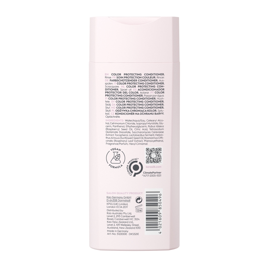 Feuchtigkeitsspendender Conditioner mit Biomimetischer Seide und Himbeersamen-Öl. Die zu 100 % vegane Formulierung verhindert vorzeitiges Verblassen der Farbe, gibt dem Haar Elastizität zurück und verbessert die Kämmbarkeit – für Haar mit lebendiger Farbe und fantastischem Glanz.