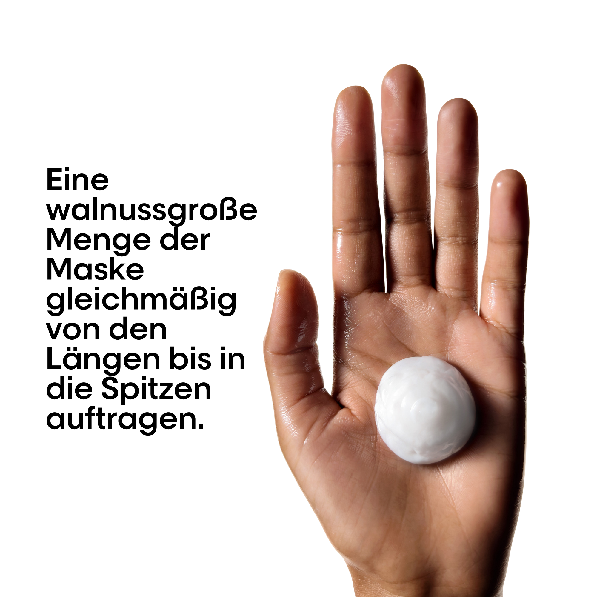 Metal DX Maske auftragen, einarbeiten und das Haar entwirren. Mindestens 2-5 Minuten und für eine intensivere Pflege 15 Minuten einwirken lassen. Danach ausspülen.