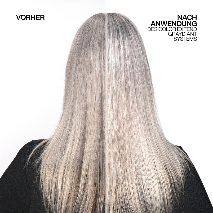 Color Extend Graydiant neutralisiert unerwünschte Gelb- und Orangetöne im Haar und veredelt es auf einzigartige Weise, indem Grau- und Silbertöne verstärkt werden.