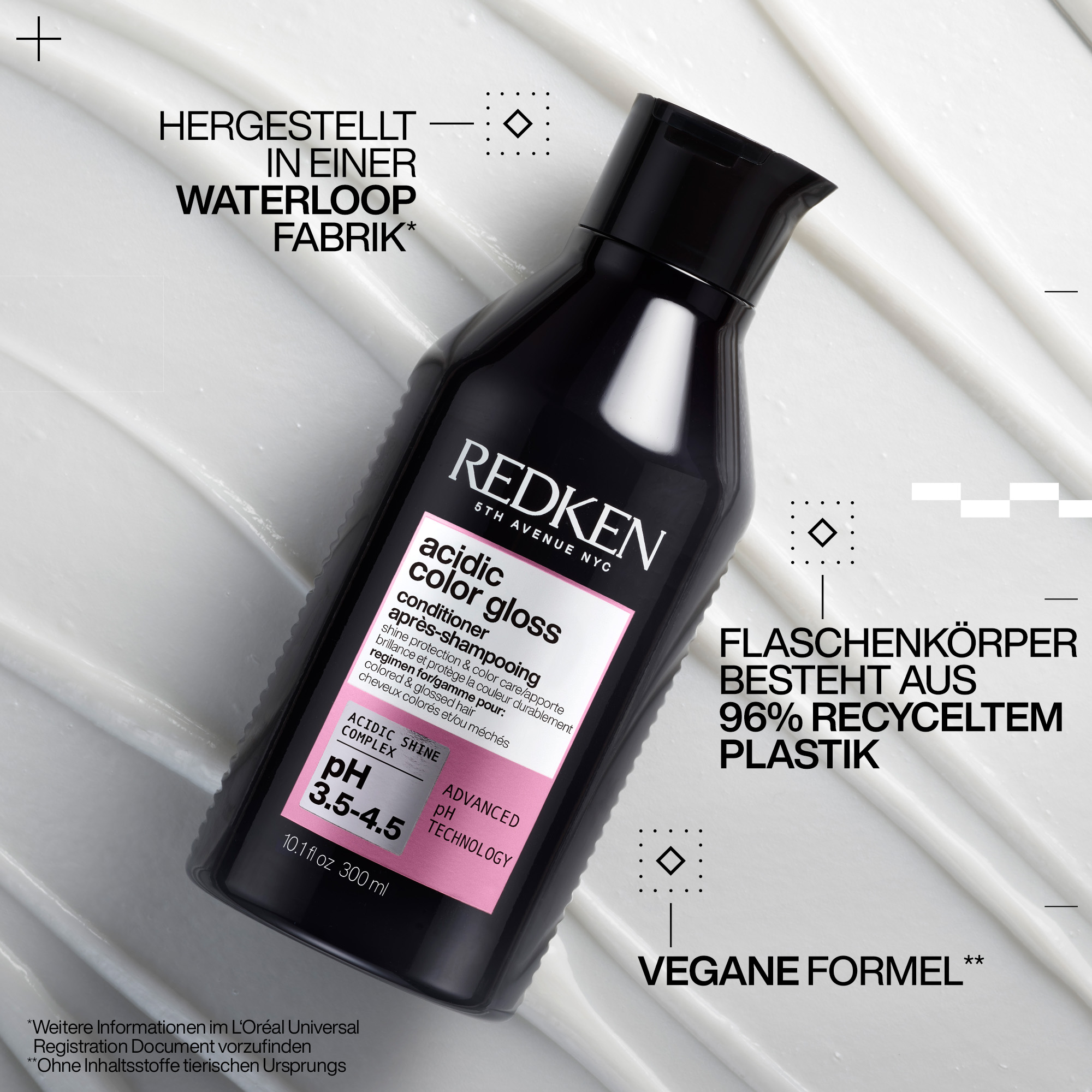 Der Acidic Color Gloss Conditioner schützt vor Farbverlust zwischen den Colorationen und verleiht langanhaltende Farbbrillanz für bis zu 32 Haarwäschen. Die mit einem Glanzkomplex angereicherte, pH-ausgleichende Formel schließt die Schuppenschicht des Haares, bringt das Haar nach Colorationen wieder ins Gleichgewicht und versiegelt den Glanz auf molekularer Ebene. Für gesund aussehendes Haar mit Glanz wie nie zuvor!