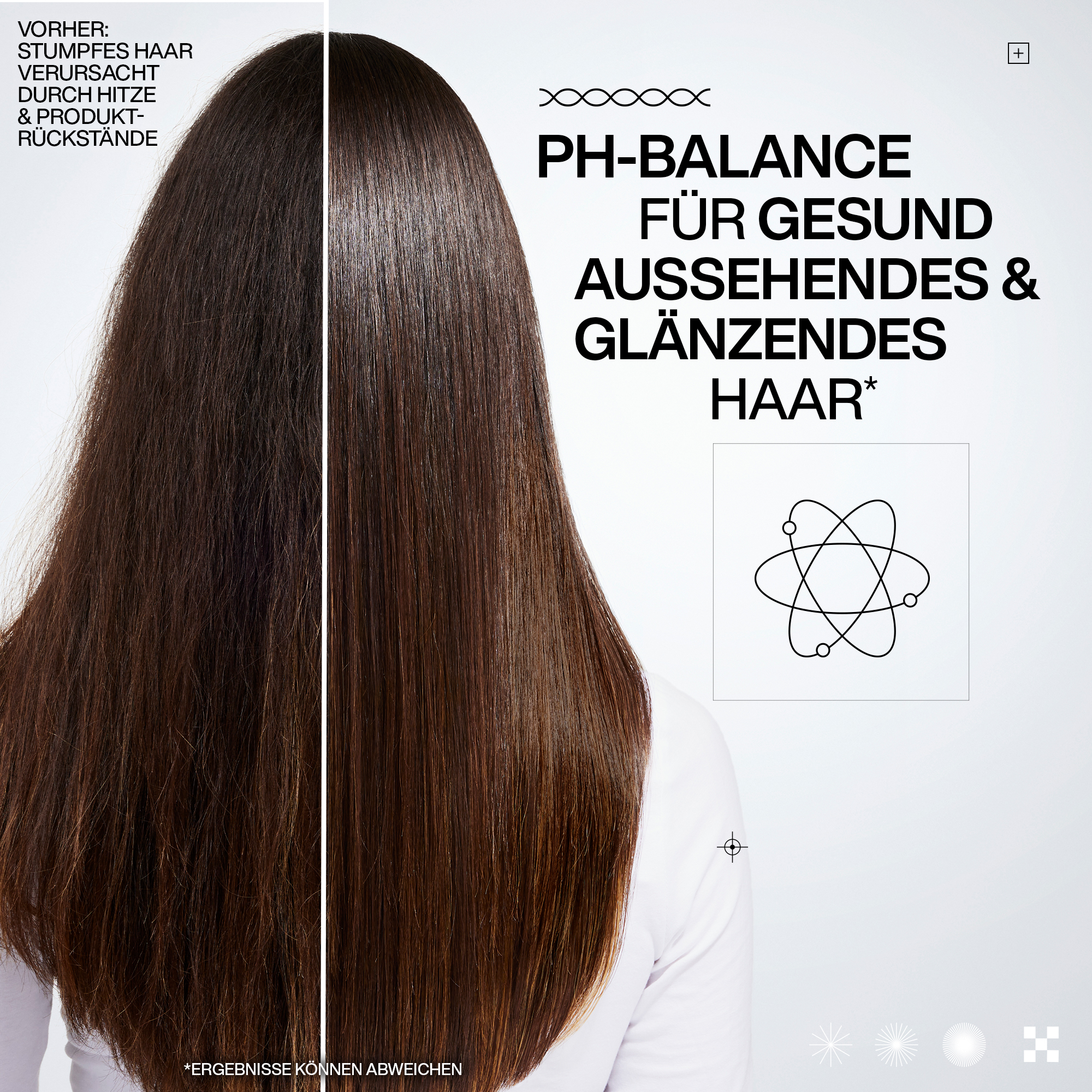 - Saure pH-Formel schließt Schuppenschicht + versiegelt Glanz