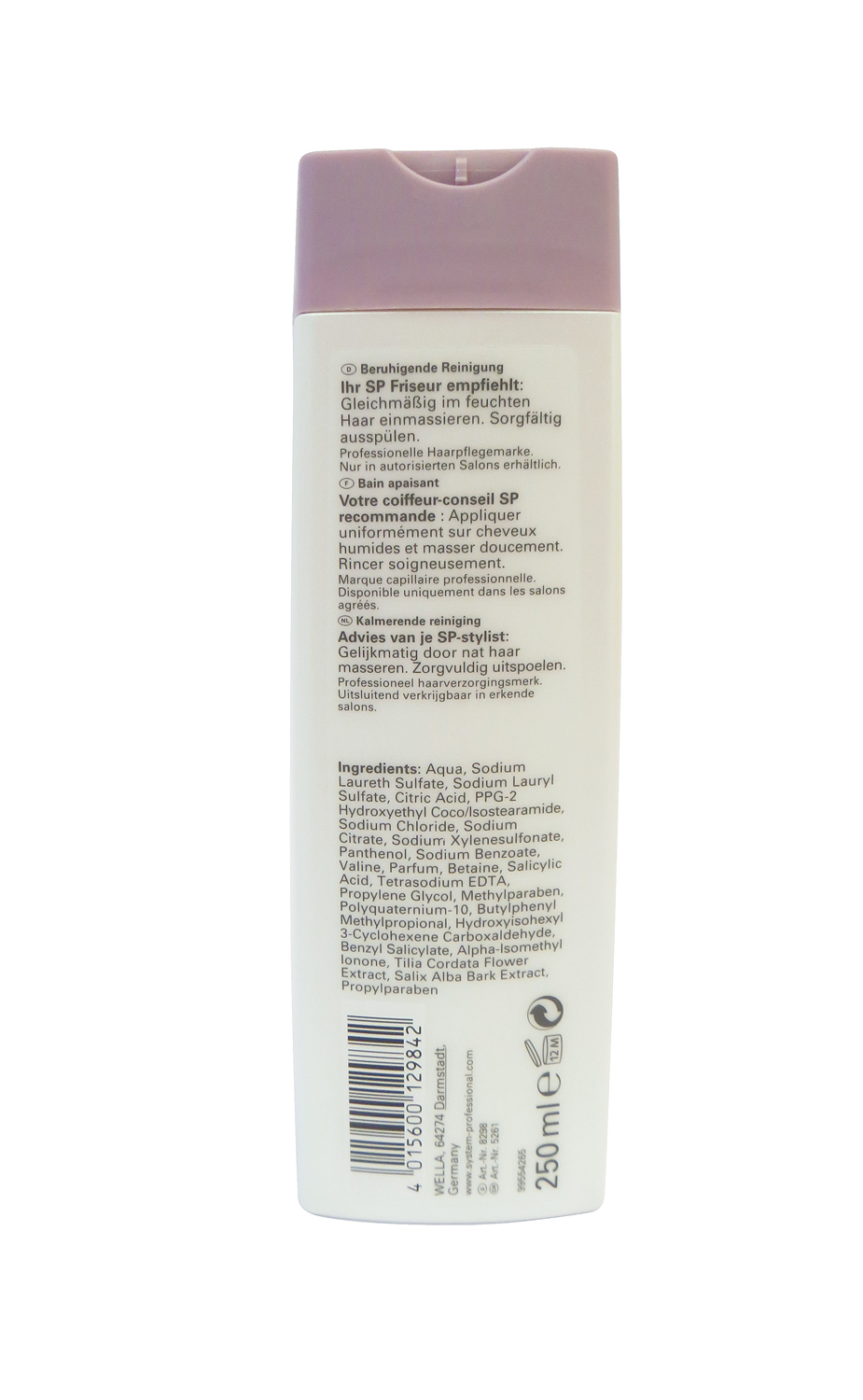 Aqua/Water/Eau, Sodium Laureth Sulfate, PEG-3 Distearate, Sodium Laureth-8 Sulfate, Cocamidopropyl Betaine, Propylene Glycol, Piroctone Olamine, Sodium Chloride, Phenoxyethanol, Parfum/Fragrance, Magnesium Laureth Sulfate, Magnesium Laureth-8 Sulfate, Sodium Oleth Sulfate, Sodium Benzoate, Citric Acid, Allantoin, Magnesium Oleth Sulfate, Polyquaternium-10, Benzoic Acid, Ethylhexylglycerin, Ethoxydiglycol, Hamamelis Virginiana (Witch Hazel) Water, Benzyl Salicylate, Alpha-Isomethyl Ionone, Hexyl Cinnamal, Linalool, Alcohol, Glucose, Lactic Acid, Betula Alba Leaf Extract, Achillea Millefolium Extract, Urtica Dioica (Nettle) Extract, Salvia Officinalis (Sage) Leaf Extract, Rosmarinus Officinalis (Rosemary) Leaf Extract, Equisetum Arvense Extract, Potassium Sorbate, Calcium Pantothenate, Inositol, Tartaric Acid, BHT, Tocopherol, Sodium Hydroxide, Caramel
